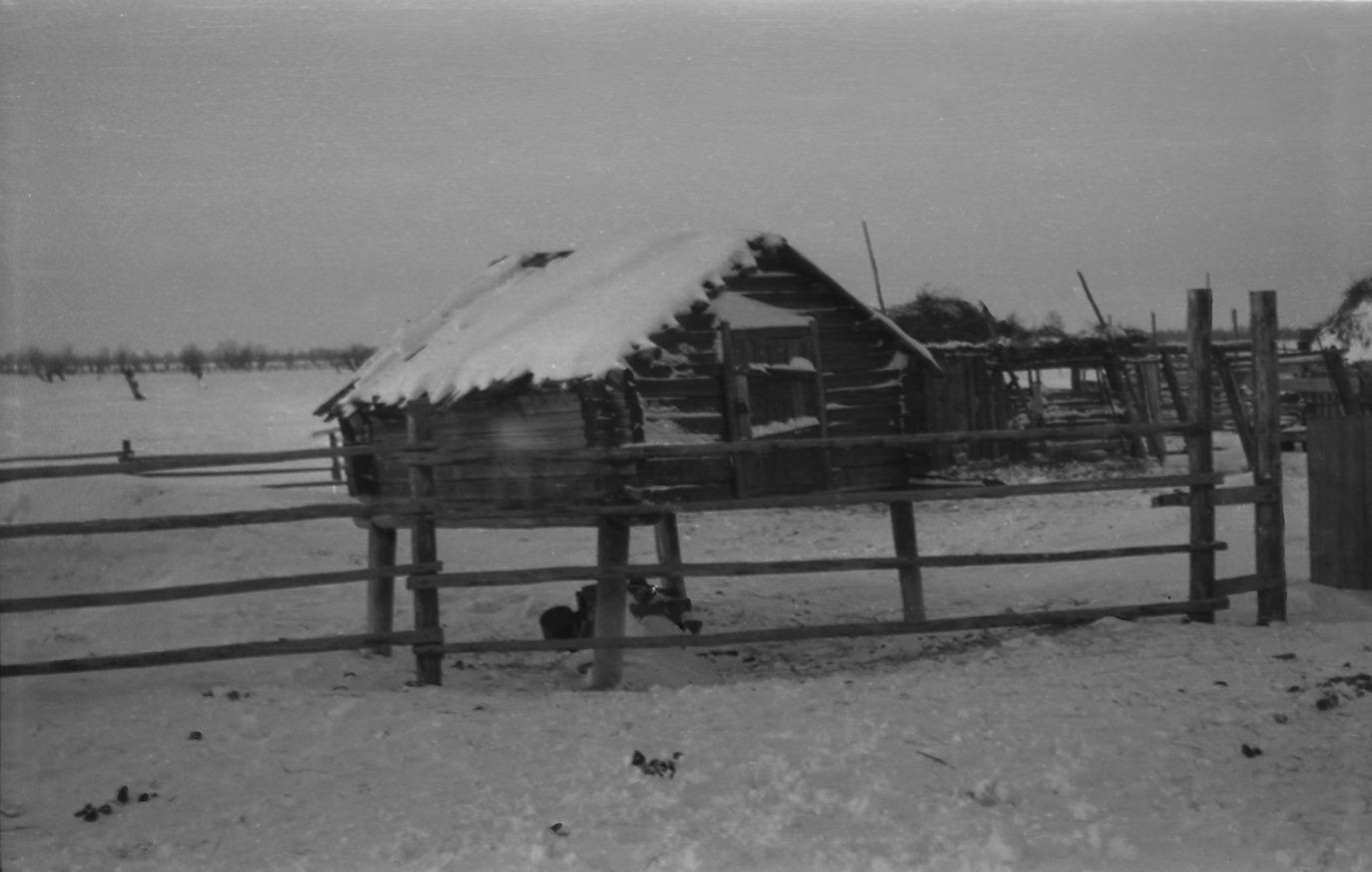 Comment (Slepenkova (Seburova) Rima Konstantinovna): Fence. Legged pantry. Winter....show more