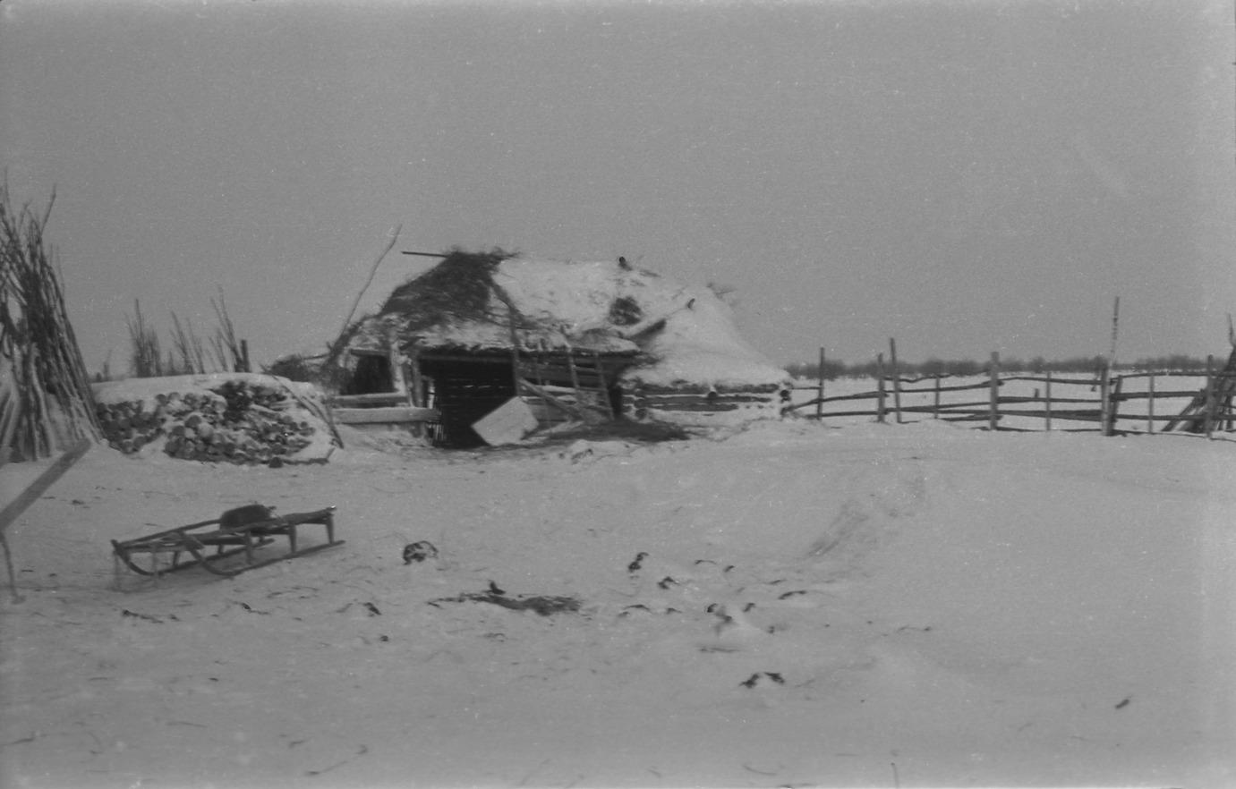 Comment (Slepenkova (Seburova) Rima Konstantinovna): Matrёna Grigor'evna Seburova (Griškina)'s yard. Winter. Snow....show more