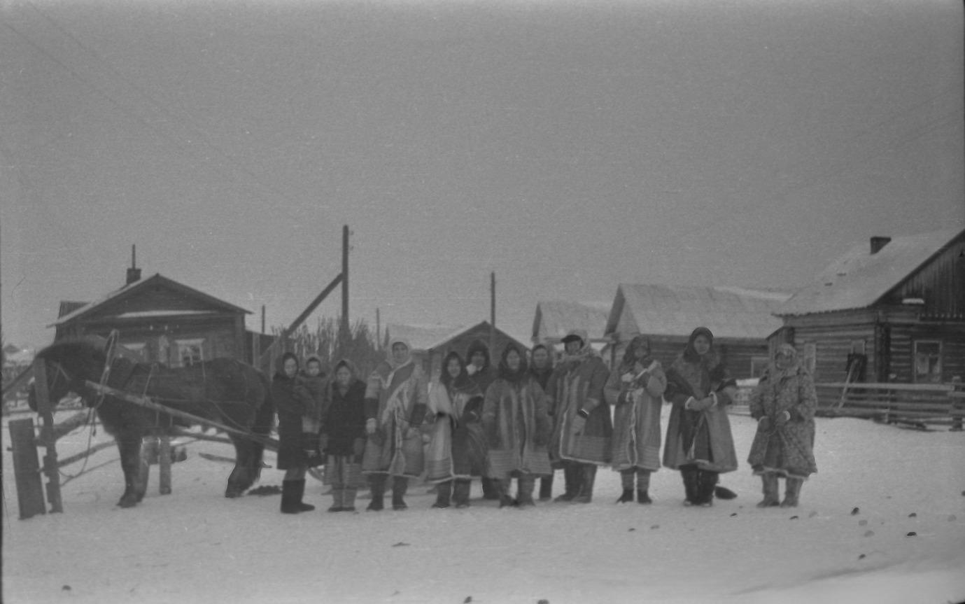 Person(s) on photo: Zubakina (Griškina) Ljudmila Kalistratovna; Griškina Jelena Kalistratovna; Griškina Marfa Jefimovna; Seburova (Makarova) Jelena Jermolaevna; Griškina (Lel'khova) Anastasija Dmitrievna; Griškin Gennadij Grigor'evič; Griškina (Seburova) Jevdokija Nikolaevna; Griškina (Lel'khova) Pelageja Alekseevna; Seburova Taisija Stepanovna; Griškina Nina Nikolaevna; Griškina Marfa; Ol'zina (Seburova) Luker'ja Andreevna